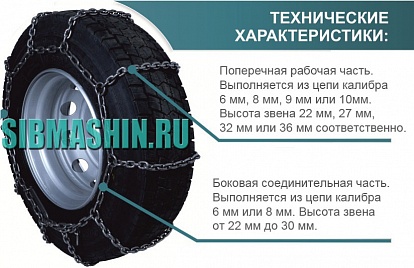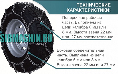 Цепи противоскольжения для грузовых автомобилей тип «зигзаг» изготавливаются из цепей калибра — 6/6мм, 8/8мм (где первая цифра — калибр поперечной рабочей части цепи, вторая цифра — калибр боковой соединительной части цепи).