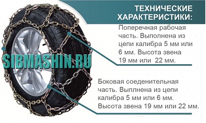 Для легковых автомобилей, внедорожников и грузовиков изготавливаются разные цепи противоскольжения. Все зависит от размера колеса. Для грузовиков и тракторов используются цепи с большими звеньями. Цепи можно ставить как на все колеса, так и только на ведущие.