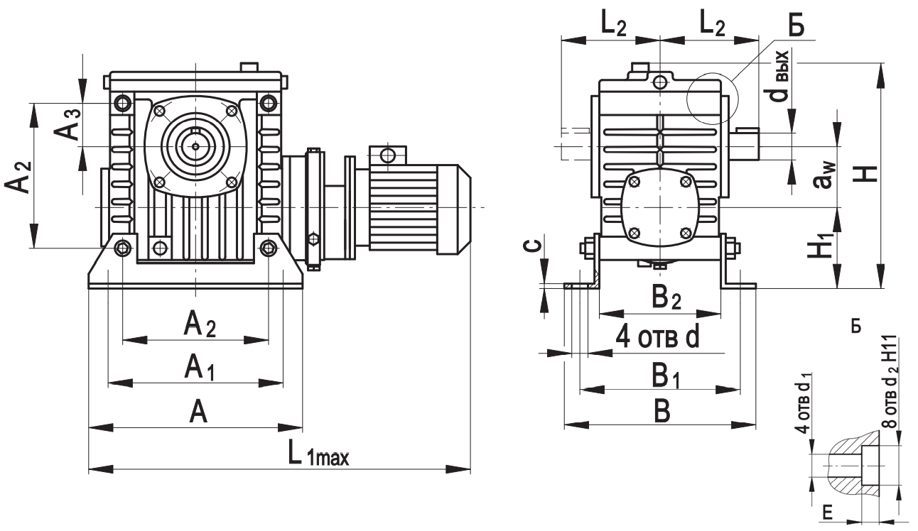 aw А А1 А2 А3 В В1 В2 L* L. 1max L2* Н Н1 с d d1 d2 Е dвх dвых