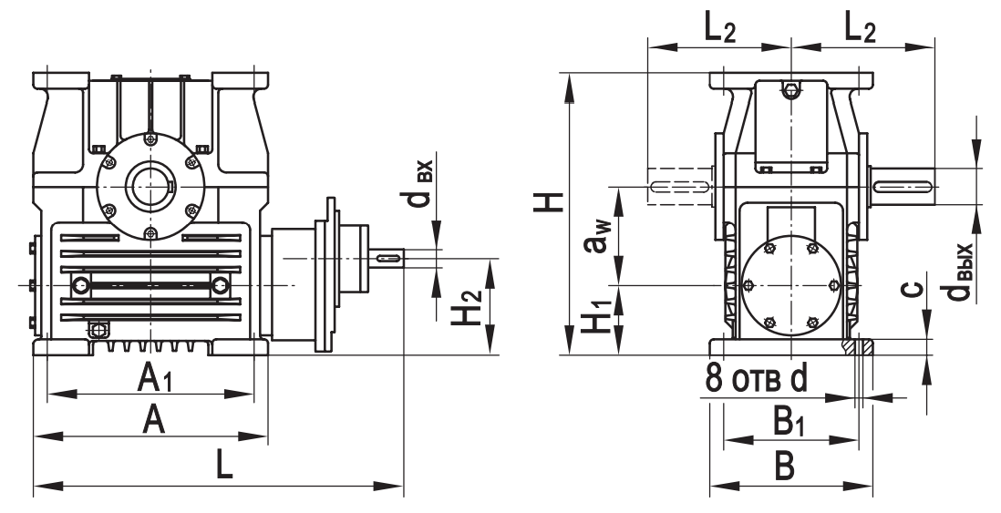Типоразмер аW А А1 В В1 L* L2* Н Н1 Н2 с d dвх dвых