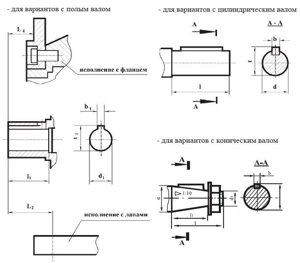 Размеры выходных концов валов.